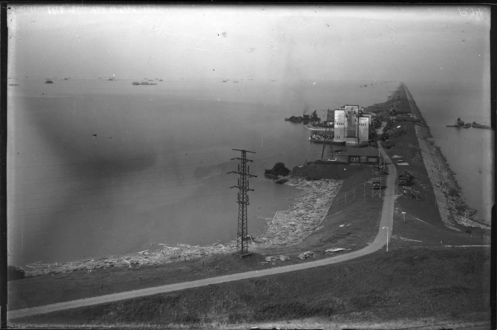 Dammen voor de beteugeling van het Amsteldiep bij De Haukes. Onderdeel van de Zuiderzeewerken.